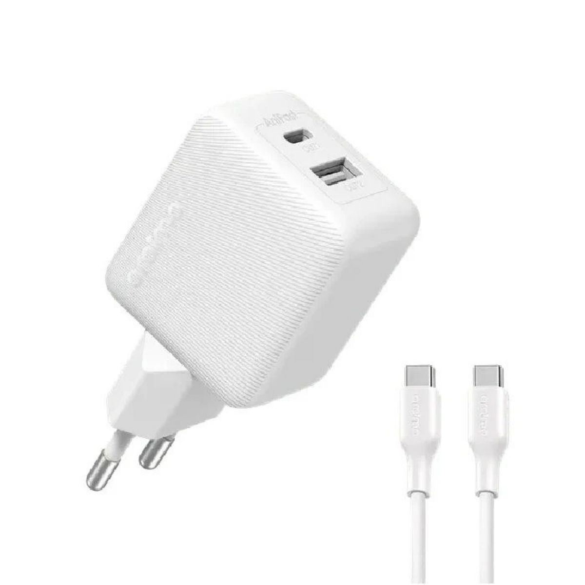 Incorpora doble puerto (USB-C + USB-A), lo que permite cargar dos dispositivos simultáneamente, brindando mayor practicidad tanto en el hogar como en la oficina o viajes.