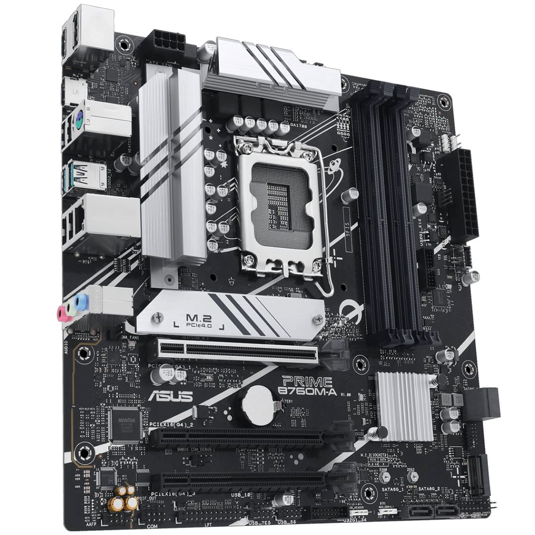 Motherboard Intel B760 (LGA 1700) mATX con PCIe 4.0, DDR5, dos puertos M.2, Realtek 2.5Gb Ethernet, DisplayPort, Dual HDMI, SATA 6 Gbps, USB 3.2 Gen 2 trasero, USB 3.2 Gen 1 Type-C frontal, Aura Sync.