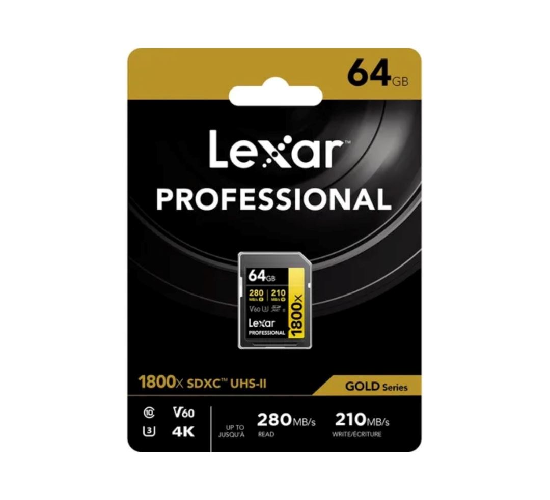 Capacidad: 64GBTipo: SDClase: 10, U3, V60Formato: SDXC UHS-IISerie: GoldVelocidad de lectura de hasta 280 MB/s.Velocidad de escritura de hasta 205 MB/s.