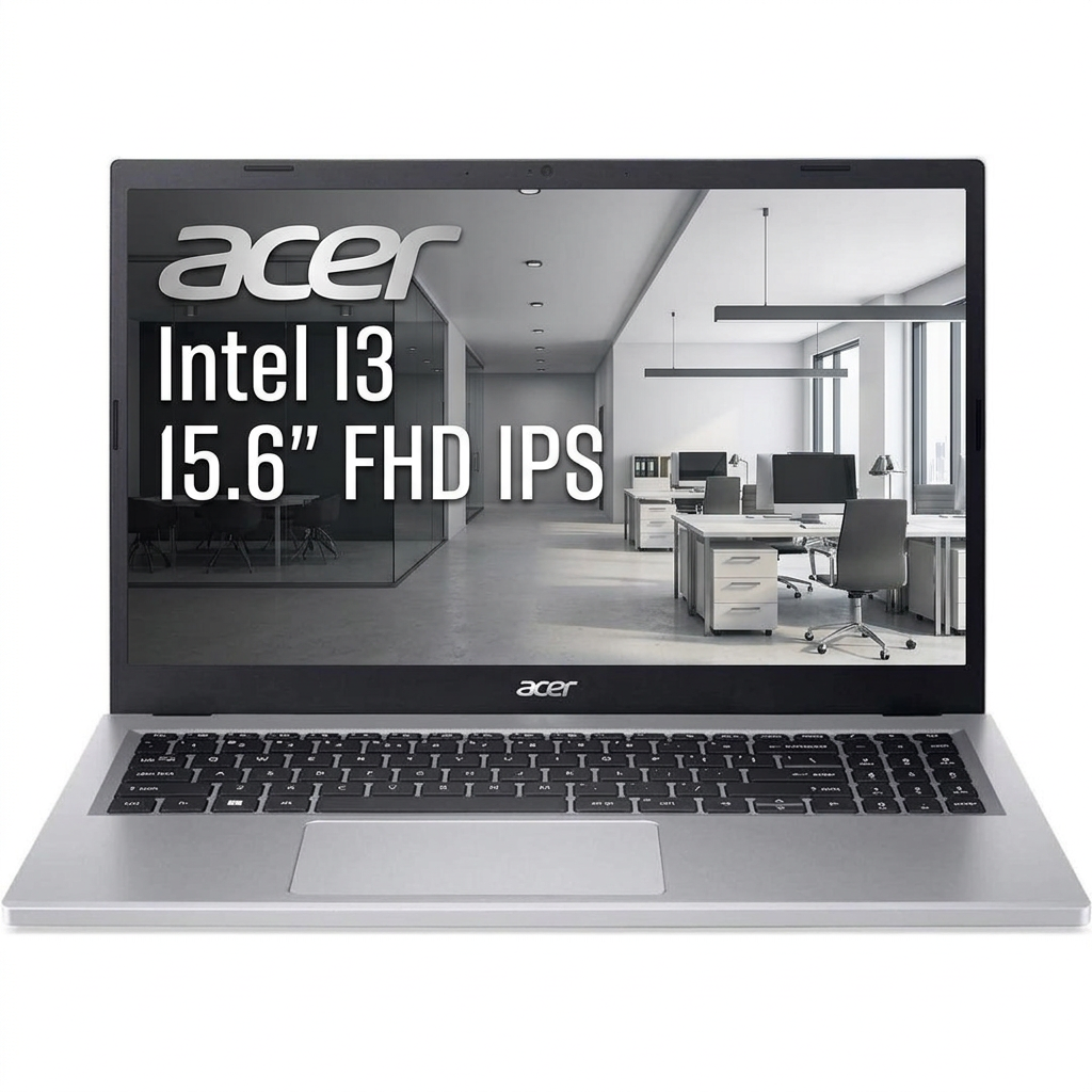 Notebook Acer con Intel Core i3-1305U (13ª gen, boost 4.5GHz), 8GB DDR4 3200MHz con slot libre para expansión, SSD NVMe 512GB, pantalla IPS 15.6" Full HD 1920×1080, WiFi 6, batería 38Wh.
